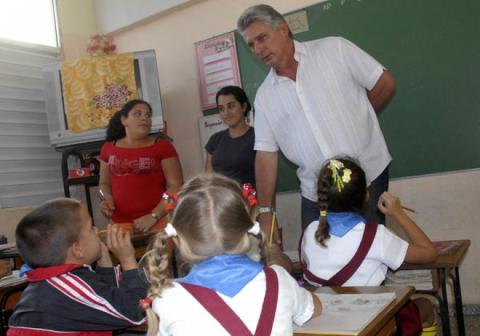 Díaz-Canel se interesó por la forma en que la escuela se compenetra con la familia y la comunidad, y cómo estos factores contribuyen al mejor funcionamiento del plantel, de manera que gane la formación integral de los alumnos, tanto en el orden académico como en lograr ciudadanos más plenos y educados.