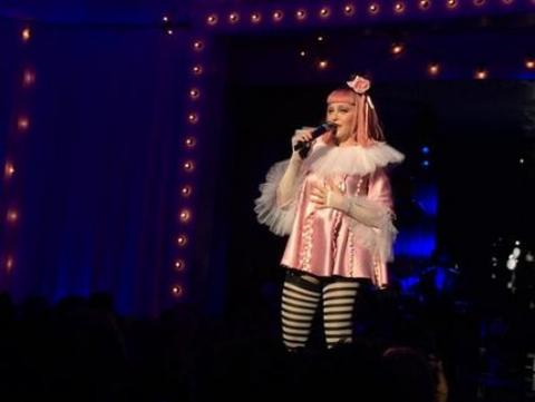 En un momento de la noche caminó por entre el público subiéndose a las mesas y bailando en el regazo de un hombre. Más tarde agarró la silla en la que había actuado y dijo que quería subastarla, explicando que 600 dólares podían enviar a una niña de Malawi a la escuela secundaria y 2.000 dólares cubrirían sus gastos universitarios. La silla alcanzó los 10.000 dólares.