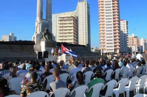 Durante las palabras centrales del acto, realizado en el monumento al Maine (en el litoral habanero), el presidente del Instituto de Historia de Cuba, René González, relató cómo a partir de ese incidente en la historia de Estados Unidos proliferó la fabricación de excusas para provocar confrontaciones armadas.