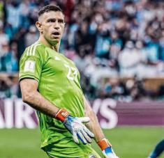 Emiliano 'Dibu' Martínez festejando penal fallado por Aurélien Tchouaméni