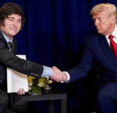 Donald Trump estrecha su mano con Javier Milei durante un encuentro reciente en Nueva York (Foto: Reuters / Al Drago / File Photo)