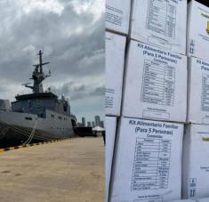 El apoyo humanitario incluye 54 toneladas de carga seca, kits de alimentos, kits de aseo, toldillos, leche UHT, y agua. Cortesía UNGRD
