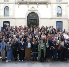 Miles de personas se manifiestan con banderas palestinas tras un cartel de 'Stop genocidio' durante una protesta apoyada por figuras del cine español durante el Festival de San Sebastián, el 24 de septiembr4e de 2025 en la ciudad vasca. Ander Gillenea / AFP