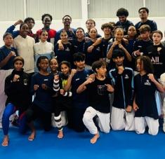 Cubanos en Francia junto a varios de quienes le colaboraron. Foto: Cortesía Federación Cubana de Taekwondo