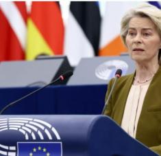 La presidenta de la Comisión Europea, Ursula von der Leyen, en un pleno del Parlamento Europeo en Estrasburgo, Francia, el 26 de noviembre de 2025 (Frederick Florin)