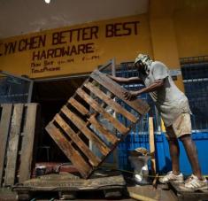 Una mujer limpia escombros cerca de una casa dañada por el paso del huracán Melissa, Black River, St. Elizabeth, Jamaica, el 29 de octubre de 2025 (Ricardo Makyn)