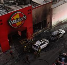 Fotografía aérea de bomberos controlando el incendio en la tienda y que ha dejado al menos 23 muertos. DANIEL SÁNCHEZ / EFE