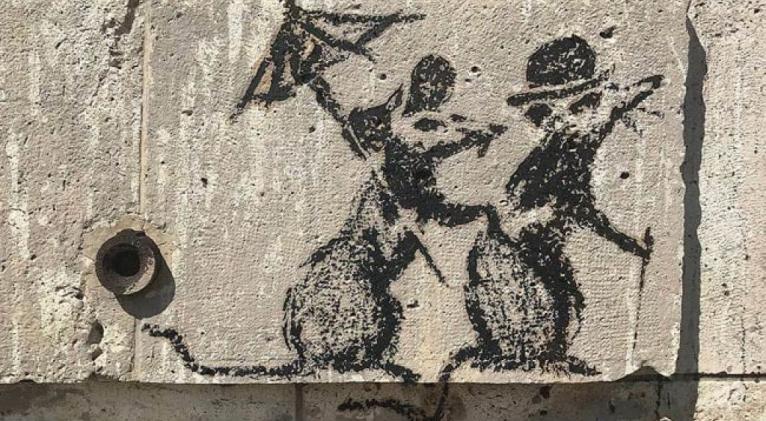 A rat holding an umbrella is one of Banksy's most famous artworks.