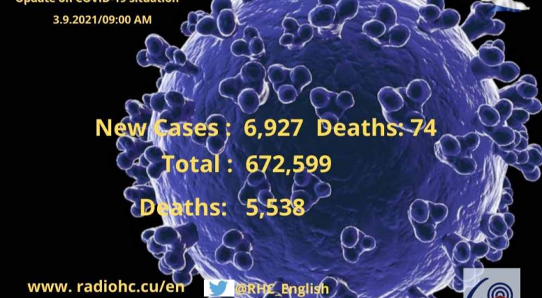 Havana, September 3 (RHC)--Cuban health authorities reported on Friday 6 927 new cases of Covid-19, and 74 deaths in the last 24 hours due to complications from the disease.
