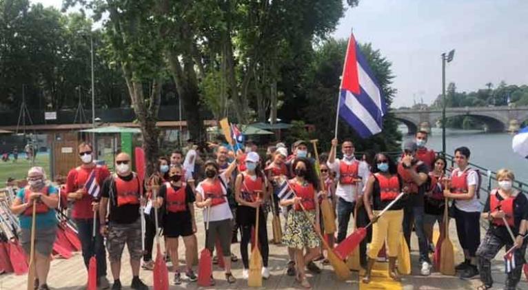 Italians and Cubans on Sunday demanded the lifting of the United States economic, financial and commercial blockade against Cuba, during a regatta on the Po river, in the city of Turin.