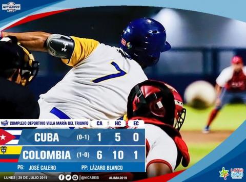 Cuba lost 1-6 against Colombia in the first day of baseball of the XVIII Pan American Games Lima 2019.