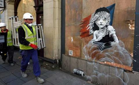 Banksy's often politically-themed street art has made him a celebrity in Britain, despite his true identity never having been confirmed.
