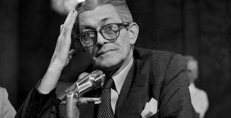 James Angleton, el legendario ex jefe de la división de contrainteligencia de la CIA, testifica sobre abusos de inteligencia ante el Comité Church del Senado en 1975. (Harvey Georges / Associated Press)
