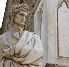 La estatua de Dante Alighieri, obra de Enrico Pazzi, en la Piazza Santa Croce de Florencia el 23 de febrero de 2021© AFP Vincenzo PINTO