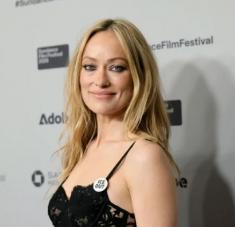 Olivia Wilde lucía un pin con la inscripción "ICE Out" durante el estreno de su película "The Invite" en el Festival de Cine de Sundance (Dia Dipasupil)