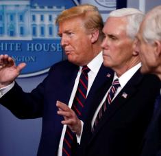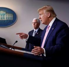 El presidente Donald Trump hace declaraciones sobre el coronavirus durante su conferencia diaria de prensa en la Casa Blanca en Washington, el sábado 4 de abril de 2020. (AP Foto/Patrick Semansky)