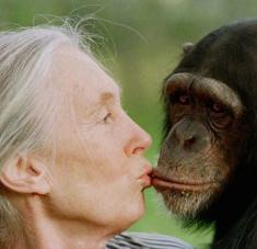 Jane Goodall besa a la chimpancé Tess en el Santuario de Chimpancés de Sweetwaters, en Nairobi, Kenia, el 6 de diciembre de 1997. (AP Foto/Jean-Marc Bouju, Archivo)