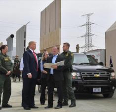 El presidente de EE.UU., Donald Trump (2º izda.), inspecciona prototipos de muro fronterizo en San Diego, California (oeste), 13 de marzo de 2018.