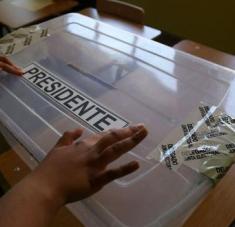 Una funcionaria del Servicio Electoral de Chile (Servel) prepara una mesa de votación en la escuela secundaria Gabriela Mistral en Punta Arenas, Chile, el 18 de diciembre de 2021. (CLAUDIO REYES / AFP).