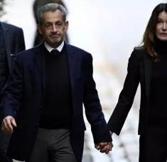 El expresidente francés Nicolas Sarkozy y su esposa Carla Bruni abandonan su domicilio en el oeste de París, antes de la entrada en prisión del político conservador, el 21 de octubre de 2025. JULIEN DE ROSA / AFP