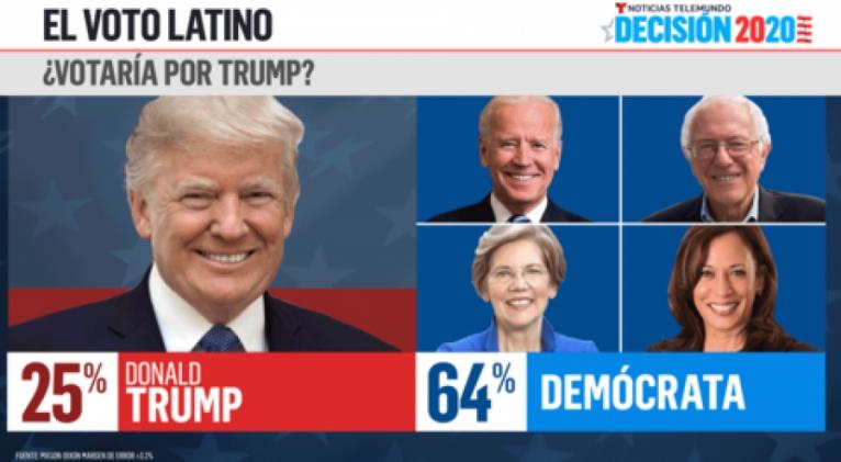 Si las elecciones previstas para el 3 de noviembre de 2020 se celebraran hoy, el 64% de los votantes latinos optaría por reemplazar a Trump por un presidente demócrata, frente a un 25% que asegura que sí le respaldaría.