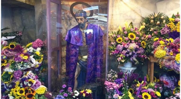 Y de la loma y el llano vienen bajando hoy para San Lázaro velas y flores moradas.