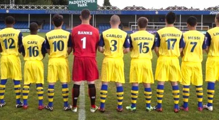 Los hinchas del Farnoborough FC, un equipo de la sexta categoría del fútbol inglés, podrán afirmar que son los únicos del mundo que vean, cada fin de semana, jugar juntos a Messi, a Zidane, a Cruyff, a Backenbauer, a, Pelé, a Maradona, a Beckenbauer e incluso a los fallecidos Bobby Moore y George Best.