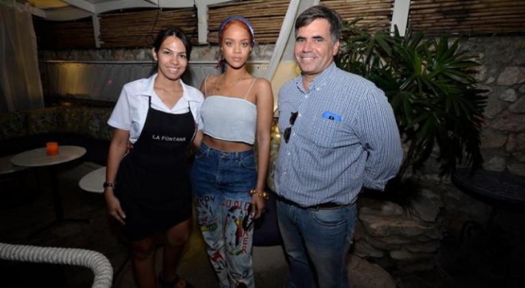 En La Fontana Rihanna pasó unas dos horas en el establecimiento junto a tres acompañantes, en lo que parece ser una visita familiar o entre amigos, y estuvo custodiada por un "fuerte equipo de seguridad".