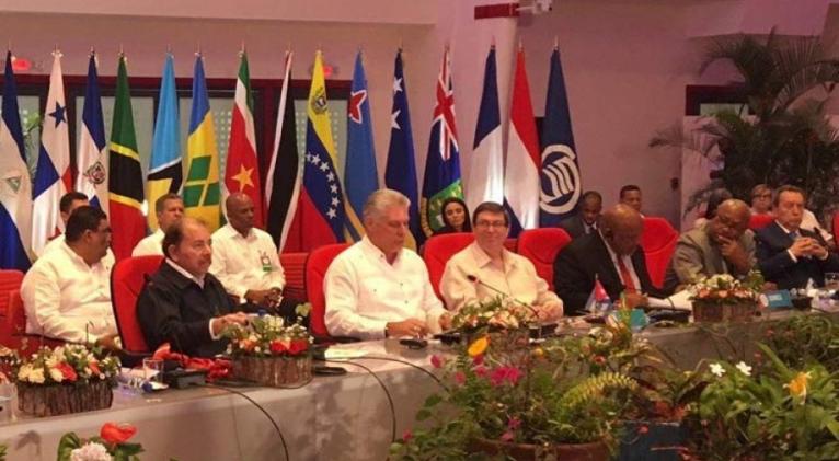 Reiteramos igualmente nuestra solidaridad y apoyo al Gobierno de Reconciliación y de Unidad Nacional de la República de Nicaragua ante los intentos de desestabilización, y celebramos el proceso de negociación para asegurar la paz y preservar los avances sociales y económicos logrados en esta hermana nación.