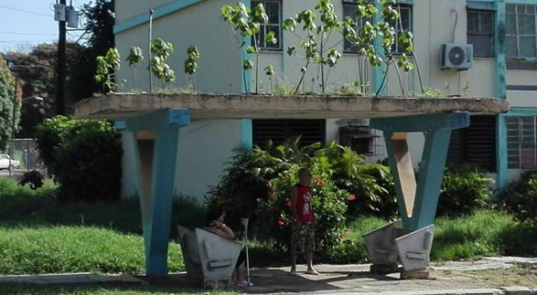 ¿Cuántas miradas se habrán posado en el techo de esta parada de guaguas, en Loma y Colón, a escasos metros de las sedes de la alta dirección del país?
