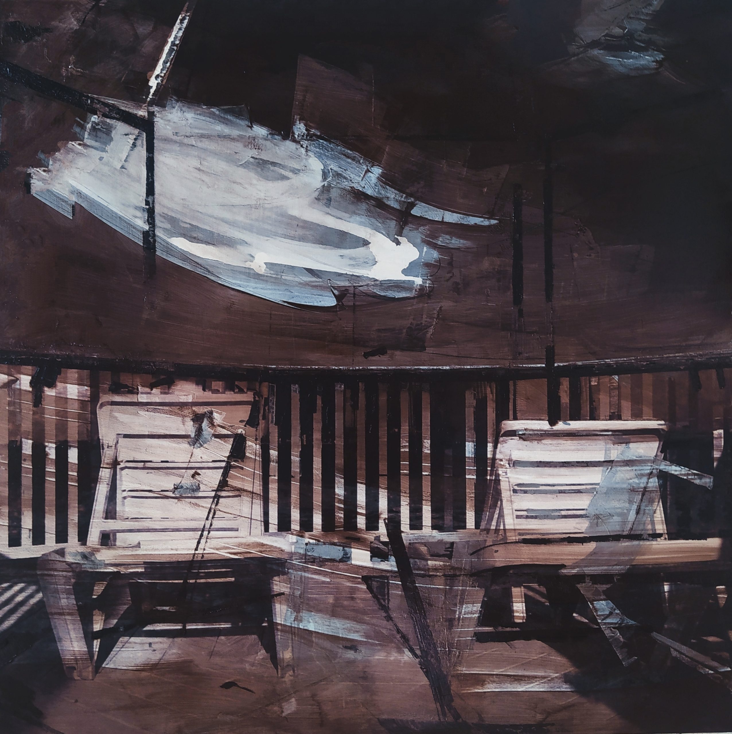 Sobre una fotografía, el artista va superponiendo capas de una relativa vocación abstracta, que son las que en definitiva redondean la atmósfera.