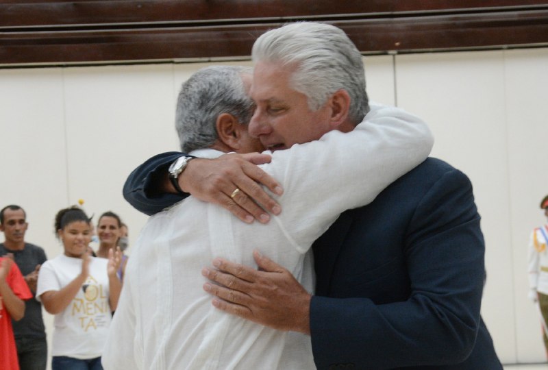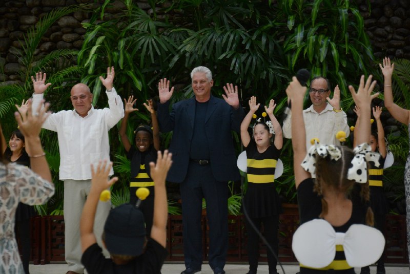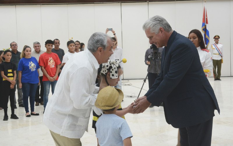Miguel Díaz-Canel Bermúdez, Primer Secretario del Comité Central del Partido Comunista de Cuba (PCC) y Presidente de la República, asiste hoy a la imposición de la Orden Félix Varela de Primer Grado a la Compañía de Teatro Infantil La Colmenita, en el Salón de Protocolo El Laguito en La Habana.