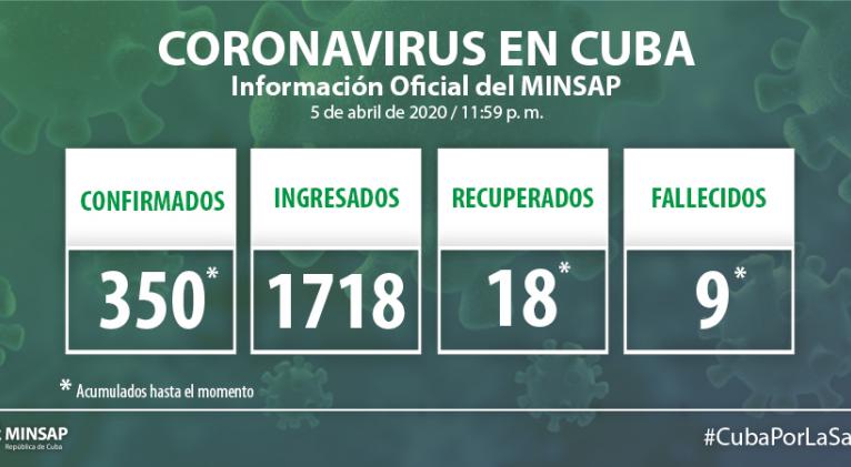 Cuba confirma 9 fallecidos y 350 casos positivos a la Covid19