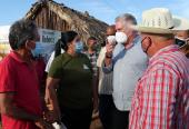 El Presidente de la República también visitó áreas de la cooperativa de producción agropecuaria (CPA) Amistad Cuba-México, de Alquízar, donde intercambió con el presidente de la entidad, el icónico Fernando Ravelo Jaime, y trabajadores contratados.