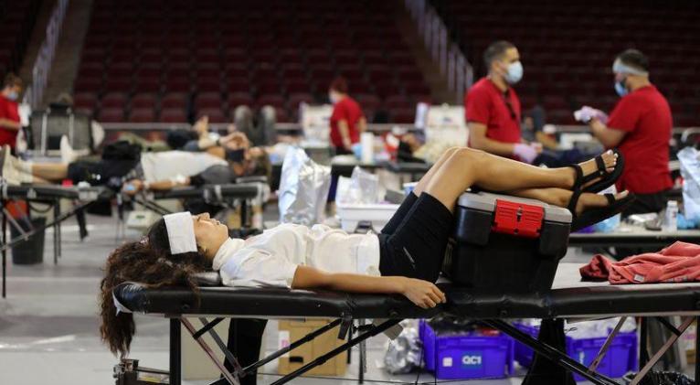 Una mujer dona sangre a la Cruz Roja mientras continúa el brote de coronavirus en Los Ángeles. 22 julio 2020. REUTERS