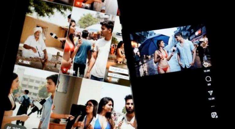 Muchos clips generados por IA, llenos de humor grosero, pretenden mostrar entrevistadoras con poca ropa en las calles de India o del Reino Unido.