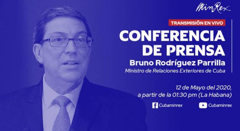 El Ministro de Relaciones Exteriores de Cuba, Bruno Rodríguez Parrilla, ofrece conferencia de prensa virtual sobre el ataque terrorista a la Embajada de Cuba en Estados Unidos, el pasado 30 de abril.