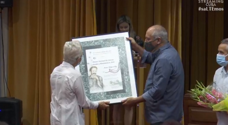Por otra parte, de manos del ministro de Cultura, Alpidio Alonso Grau y de Juan Rodríguez Cabrera, presidente del Instituto Cubano del Libro, el Doctor en Ciencias Históricas Ibrahim Hidalgo de Paz recibió el Premio Nacional de Ciencias Sociales y Humanísticas 2020, otorgado anualmente a investigadores cuya obra haya contribuido a engrandecer los conocimientos en ambos campos.