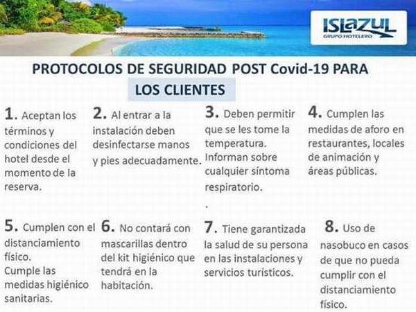 El vicepresidente comercial del grupo Islazul, Osnier Fonseca Cabrera informó que a partir del día 23 de junio se podrán a disposición de los clientes las reservaciones de las instalaciones hoteleras e insistió que una vez efectuada la reserva el cliente deberá ser informado del protocolo sanitario establecido en la instalación hotelera.