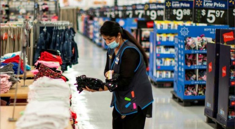 Un trabajador con mascarilla mientras organiza la mercancía en una tienda de Walmart, en North Brunswick, Nueva Jersey, EEUU, 20 de julio de 2020. REUTERS