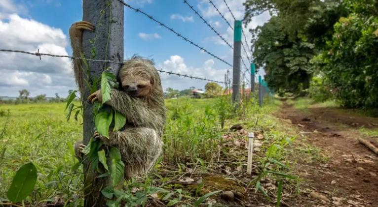 El perezoso de la foto debió recorrer una gran extensión por el suelo para alcanzar su próximo árbol. Pero en lugar de árbol encontró poste y alambre. Se pudiera aplicar aquí el célebre adagio de que a falta de pan, casabe. Pero la situación es mucho más complicada. La creciente vulnerabilidad de muchas especies ha encendido alarmas.