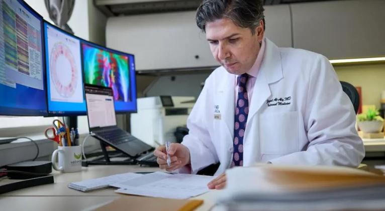 El doctor Ziyad Al-Aly, epidemiólogo clínico de la Facultad de Medicina de la Universidad de Washington en San Luis (EE.UU) examina los datos del estudio. EFE/Washington University School of Medicine