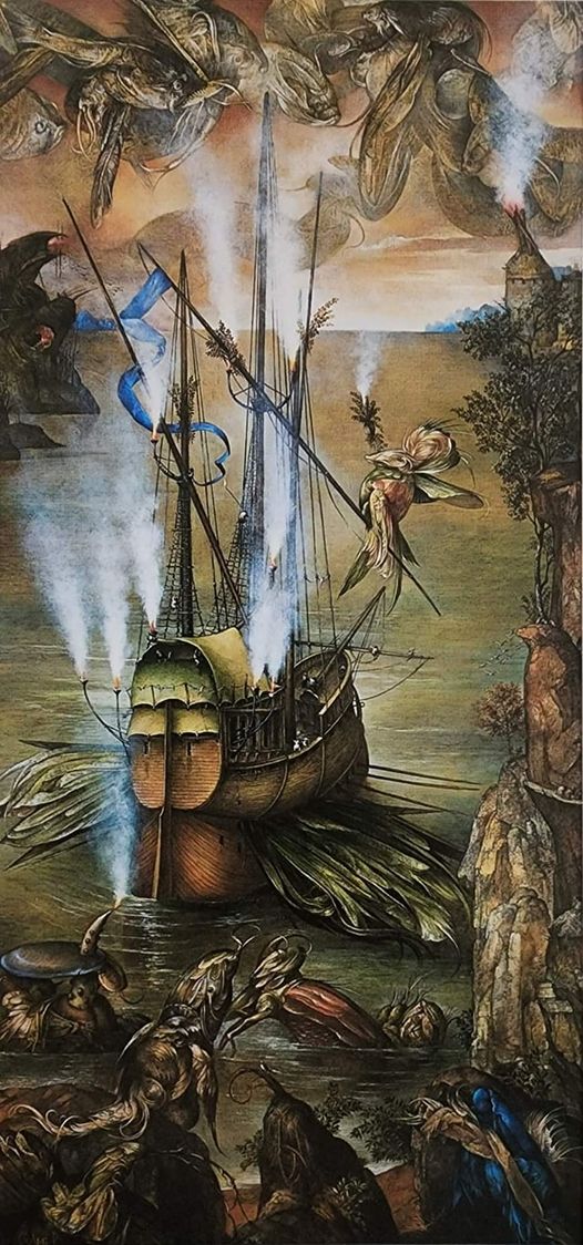 A la manera de los pintores renacentistas, o de los barrocos, o en una confluencia de referentes pictóricos, Cosme Proenza fue alumbrando un mundo mágico, maravilloso, poblado por hermosas criaturas, de ambientes de ensueño, de ondulaciones e iridiscencias: un país vislumbrado, tierra recreada con espíritu de demiurgo.