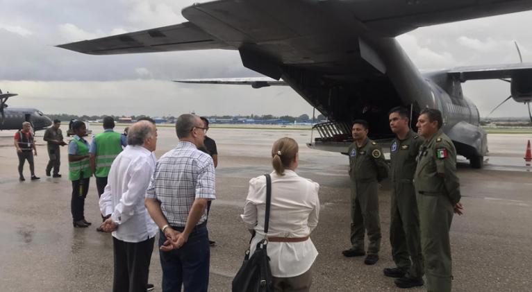 Miguel Díaz Reynoso, embajador de la nación azteca en la isla, y autoridades locales recibieron la carga, transportada por dos aviones de la Fuerza Aérea Mexicana, según reporte de la agencia Prensa Latina.