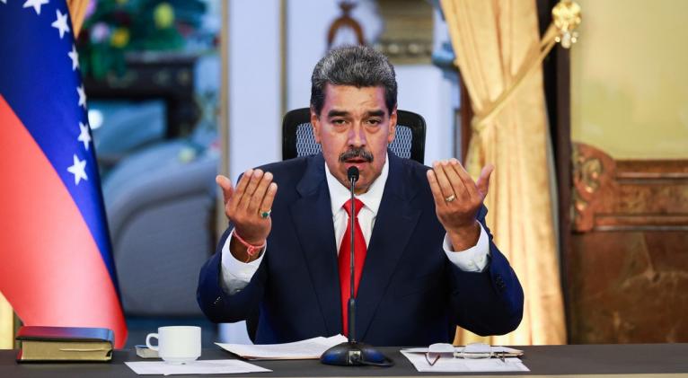 El presidente de Venezuela, Nicolás Maduro, ha declarado repetidamente que su país es víctima de "una guerra multiforme" orquestada desde EE.UU. El Estado venezolano está siendo objeto de una "agresión armada para imponer un cambio de régimen" y un gobierno "títere", a fin de "robarle el petróleo, el gas, el oro y todos los recursos naturales", explica Maduro.