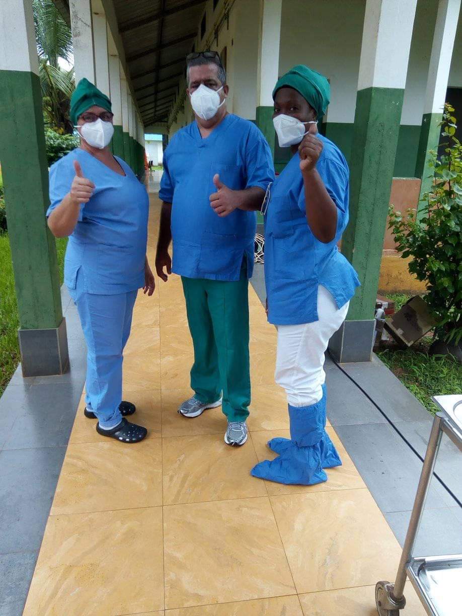 “Hemos recibido una acogida maravillosa del pueblo y de sus autoridades, elevando la admiración y el respeto por Cuba”, asegura el doctor Delgado, y al preguntársele por los retos o prioridades del trabajo en lo adelante, resumen: “Continuar con el fortalecimiento de trabajo unido al personal de salud guineano para lograr la disminución de casos contagiados, fortalecer nuestra labor a partir de los conocimientos científicos adquiridos y actualizados con el objetivo de aumentar el número de vidas salvadas en las Zonas Rojas, elevar la vigilancia epidemiológica en los casos sospechosos y sus contactos, abarcar el mayor número de casos vistos en la comunidad mediante la pesquisa, el control de casos positivos y las notificaciones, lograr que se concientice en la población la promoción y prevención de salud a través de las audiencias sanitarias y priorizando los grupos de riesgo, enfatizar en el uso de los medios de protección disponibles para los miembros de la brigada en su labor diaria, entre otros”.
