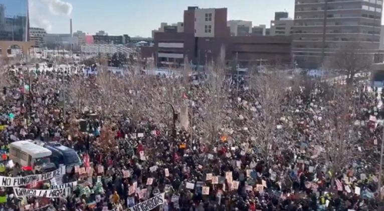 Masiva protesta en Minneapolis desafió temperaturas bajo cero y nieve