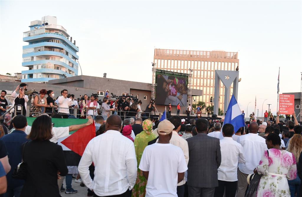 Con la presencia de Miguel Díaz-Canel Bermúdez, Primer Secretario del Comité Central del Partido Comunista de Cuba y Presidente de la República, tiene lugar en la Tribuna Antiimperialista José Martí el acto que reafirma la solidaridad de la isla con el pueblo de Palestina.