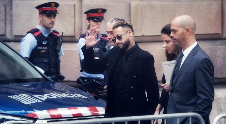 El futbolista, que la noche anterior anotó el gol de la victoria de su equipo ante el Marsella en la liga francesa, permaneció casi dos horas en la sala, sentado en la primera fila de un extenso banquillo de acusados, compartido con sus padres, los expresidentes del FC Barcelona Sandro Rosell y Josep Maria Bartomeu o los abogados de sus exclubes, Barça y Santos.