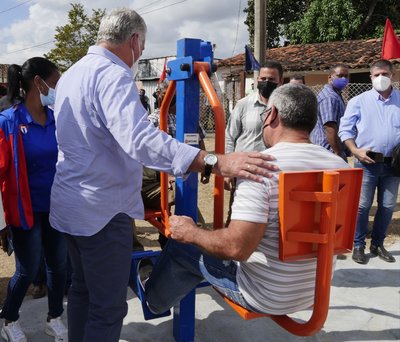 Entre esos planteamientos “envejecidos” estaba el deterioro de las instalaciones deportivas de este asentamiento donde viven poco más de 2500 espirituanos. No por azar Díaz-Canel recorrió el nuevo Complejo Deportivo Recreativo, sitio abandonado durante años, y que luego del trabajo de vecinos, empresas e instituciones, va recobrando su vitalidad. Una nueva sala para practicar ajedrez, un terreno de pelota rescatado entre todos y un gimnasio biosaludable son la muestra de cuánto puede hacerse con recursos mínimos.